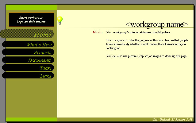 dialoogi aknas vali tööleht Presentation ja ava Group Home Page.