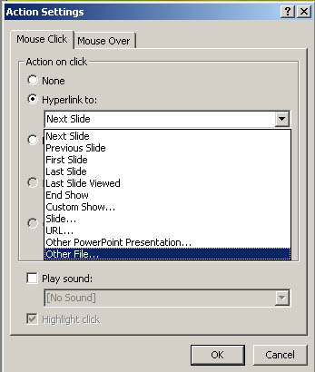 " Hyperlink to:" ja leia "Other File". Selle valikule