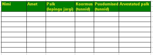 Excelis järgmine tabel ja täitke tühjad lahtrid