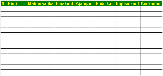 - emakeele hinne on 4, kopeerige tulemused tabeli alla.
