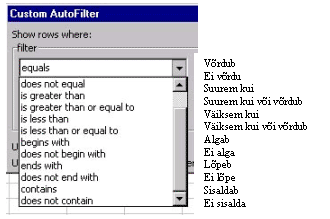 2. Kasutades käsku AutoFilter leia algjärgnevad andmed ja