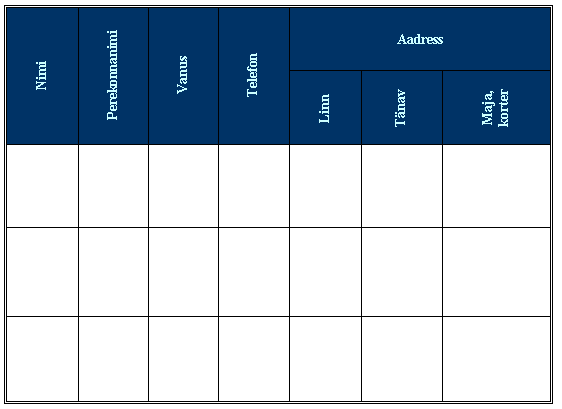 ..Kasutades käsku "Draw Table" joonistage Microsoft Wordi järgmine tabel. Täitke tühjad lahtrid.