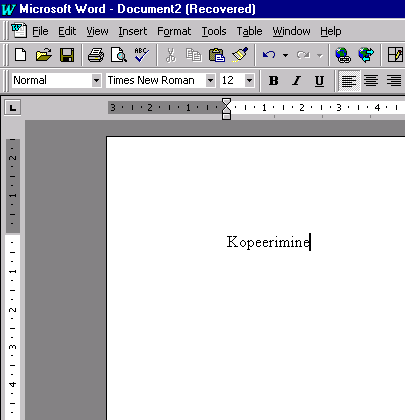 Käsk Copy kopeerib (paneb mällu) olemasolev lõik.